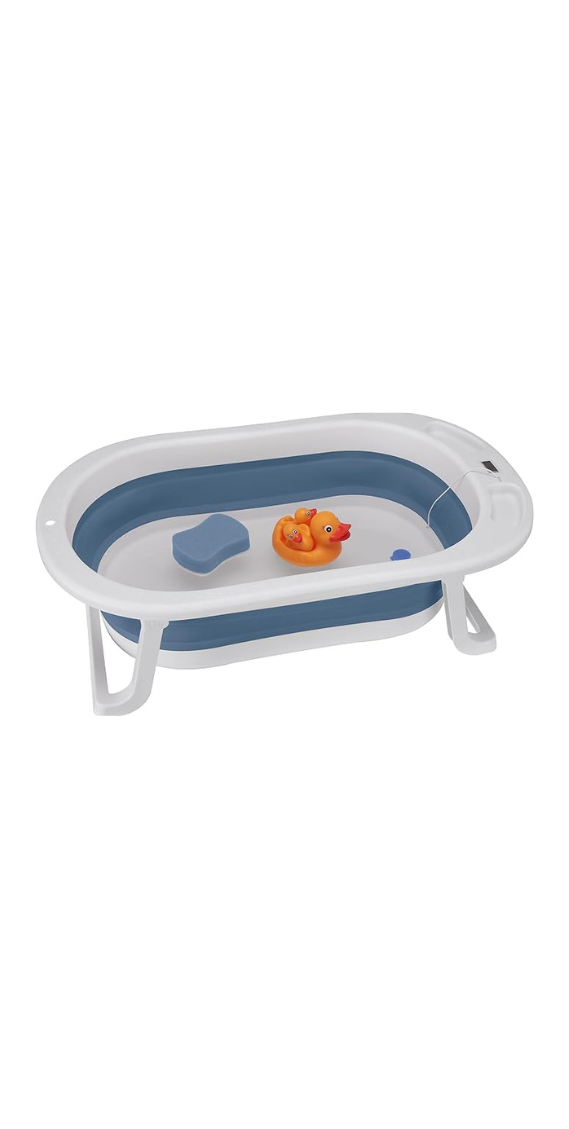 Banheira Retratil Portátil Dobrável Infantil com Termometro Digital Banho Bebê Azul Awiki